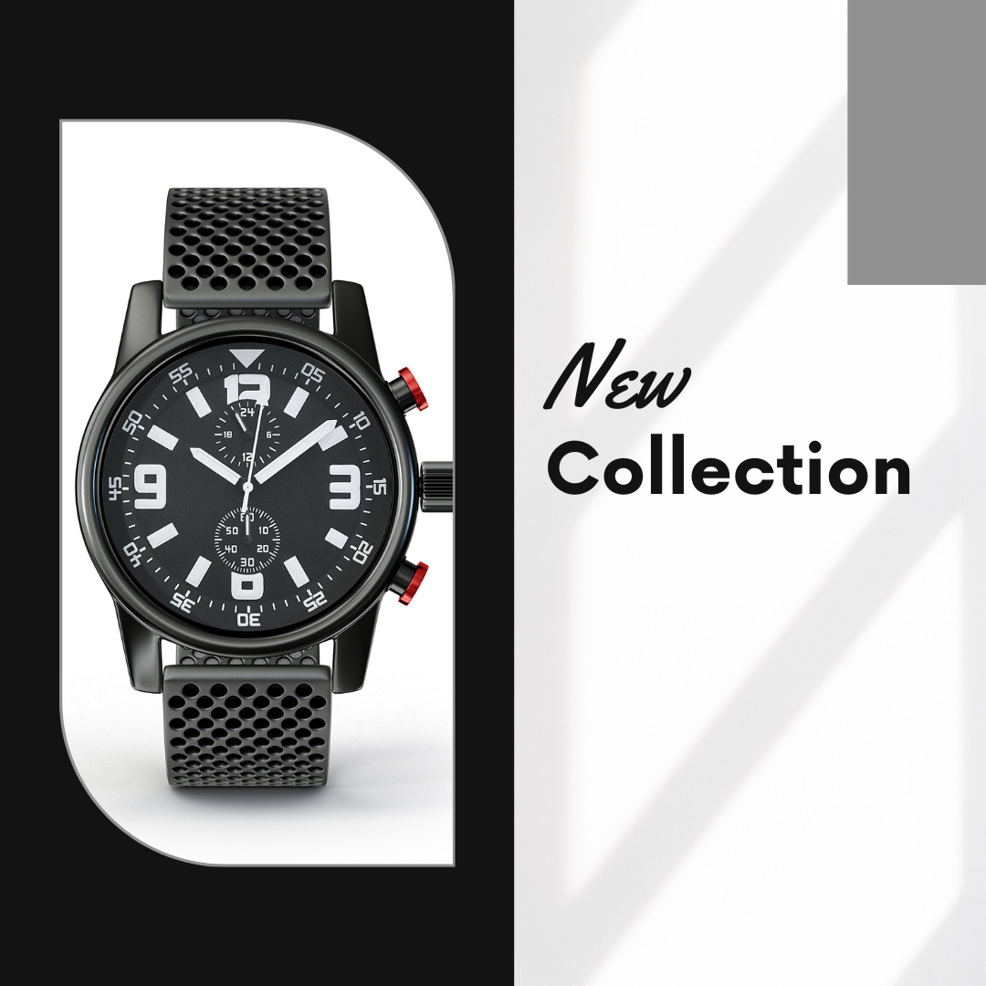 Men’s Black Stainless Steel Watch with Arabic Numerals