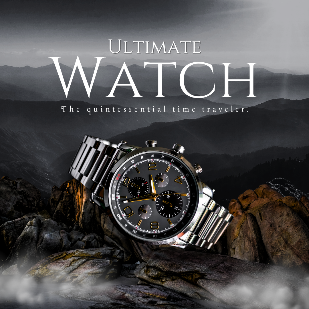 Men’s Black Stainless Steel Watch with Arabic Numerals