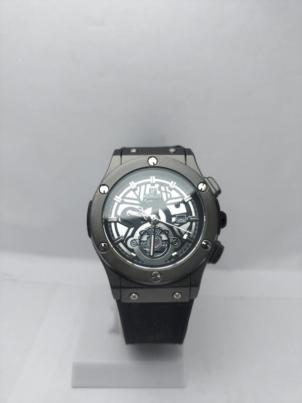 Luxury Hublot Style Skeleton Automatic Watch – Black Rubber Strap